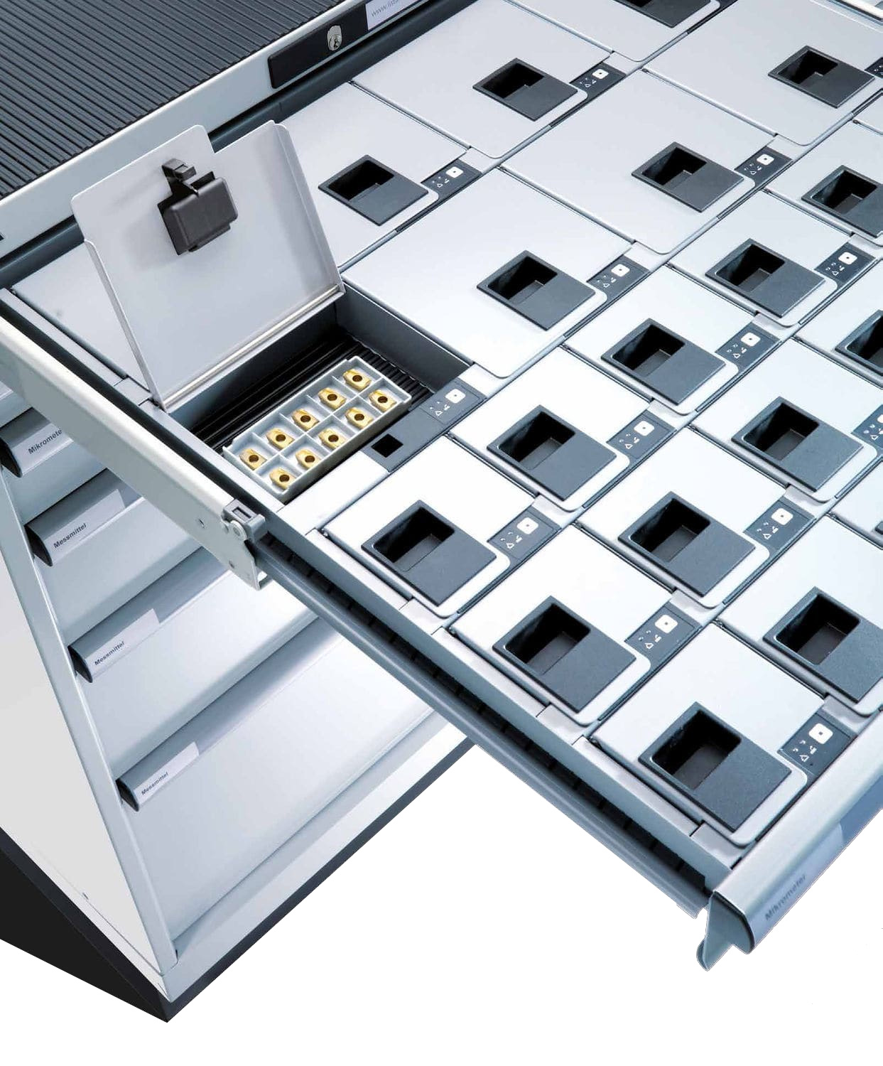 Это означает, что вы можете не только контролировать доступ ко всему шкафу, отдельным выдвижным ящикам или отсекам внутри, разработанным специально для этой системы, но и комбинировать различные версии системы в одном шкафу.